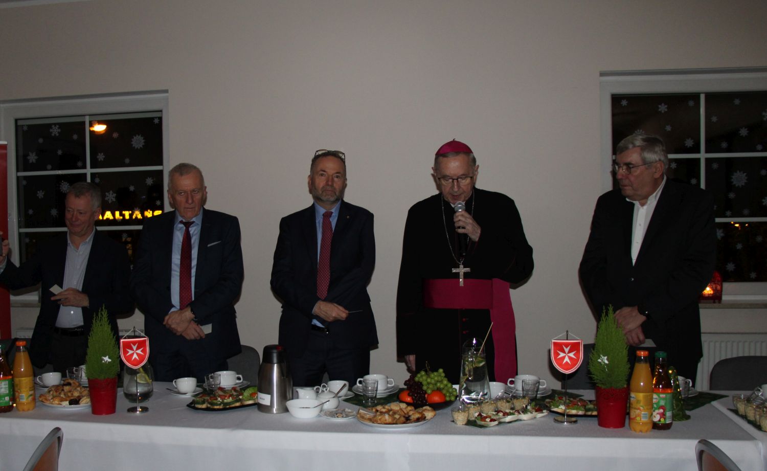 Zaproszonych gości powitał Pan Stanisław Górski – Wicedyrektor Fundacji Polskich Kawalerów Maltańskich „Pomoc Maltańska” w Poznaniu. Swoją obecnością zaszczycili nas m.in.: JE Ksiądz Arcybiskup Stanisław Gądecki – Metropolita Poznański, Ks. Prałat Paweł Deskur – Proboszcz Parafii pw. św. Jana Jerozolimskiego za Murami w Poznaniu, Pan Grzegorz Ganowicz – Przewodniczący Rady Miasta Poznania, Pan Adam Biszczanik – Zastępca Dyrektora Powiatowego Centrum Pomocy Rodzinie w Poznaniu, Pani prof. dr hab. Małgorzata Kotwicka – Uniwersytet Medycznego im. Karola Marcinkowskiego w Poznaniu, Pan Włodzimierz Kałek – Przewodniczący Miejskiej Rady Seniorów, Siostry ze Zgromadzenia Sióstr Urszulanek SJK i Zgromadzenia Sióstr Najświętszej Rodziny z Nazaretu. Jak co roku w spotkaniu wzięli udział nasi niezawodni wolontariusze, darczyńcy, przedstawiciele duchowieństwa, osoby, które na co dzień wspierają dzieła maltańskie, pracownicy wszystkich ośrodków Fundacji oraz przedstawiciele Związku Polskich Kawalerów Maltańskich.