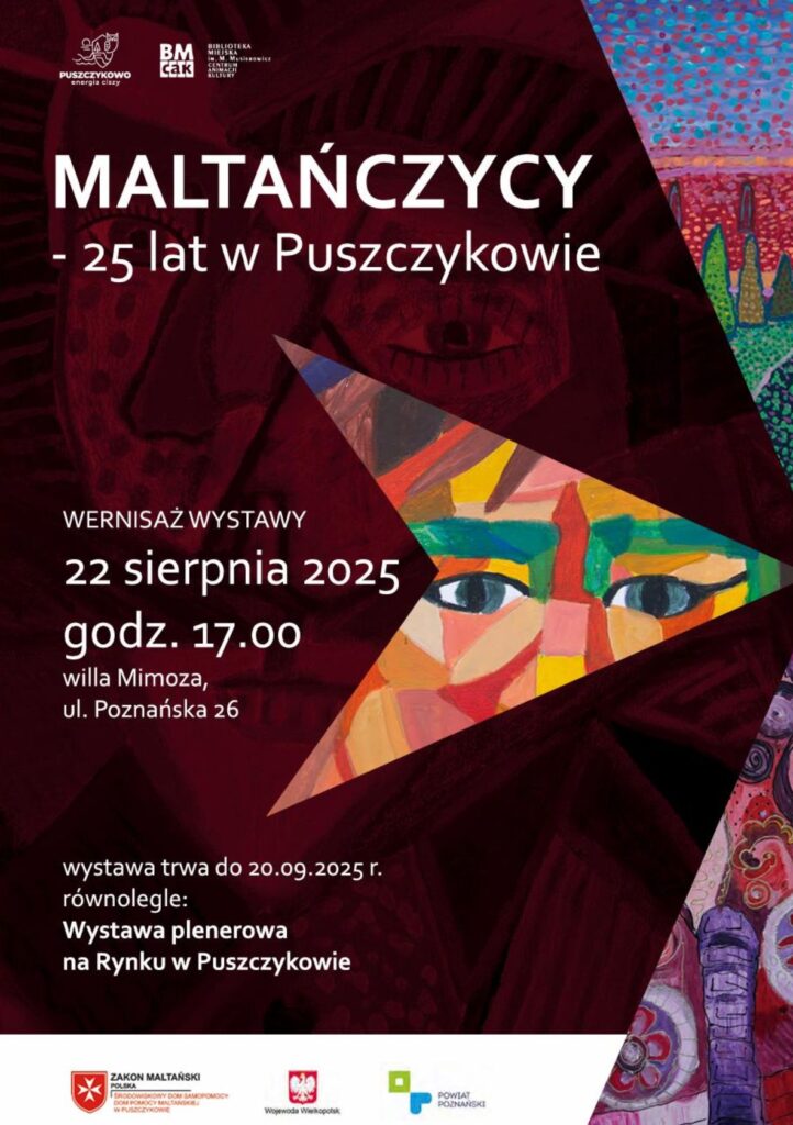 Wernisaż wystawy „Maltańczycy – 25 lat w Puszczykowie” 11/08/2025 22 sierpnia 2025 roku odbędzie się wernisaż wystawy prezentującej prace plastyczne uczestników Domu Pomocy Maltańskiej w Puszczykowie – „Maltańczycy – 25 lat w Puszczykowie”